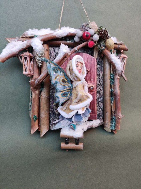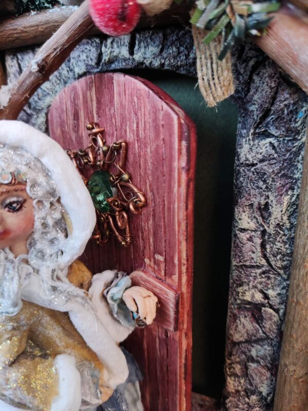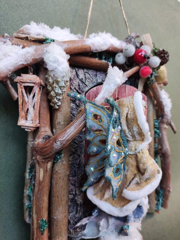 Ветки дуба, ватное папье-маше, текстиль, акриловые краски.